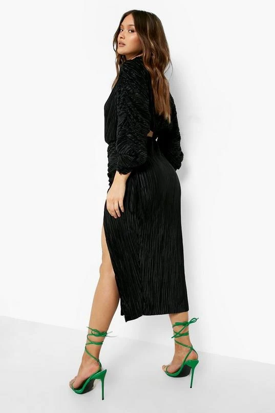 BOOHOO Plisse Ruched Side Midiaxi Skirt
