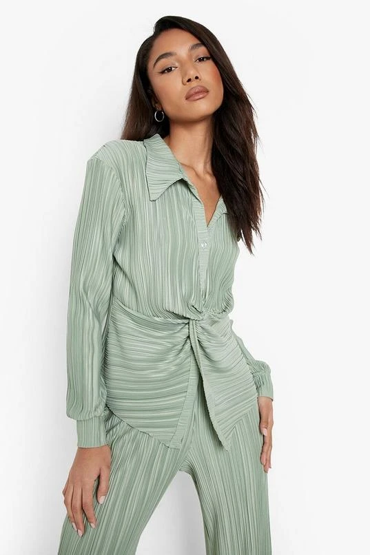 BOOHOO Plisse Twist Detail Relaxed Fit Shirt