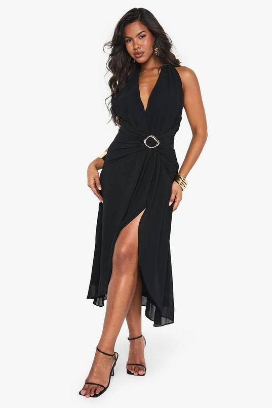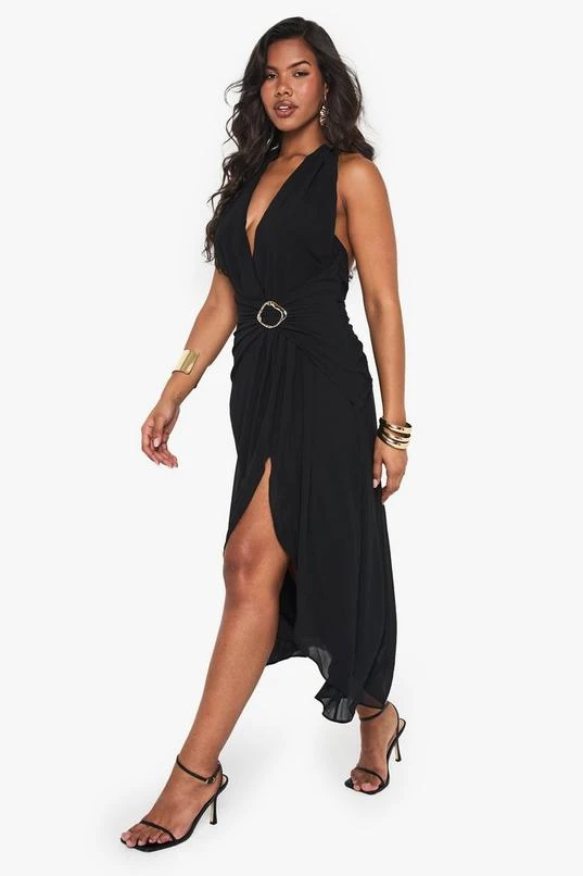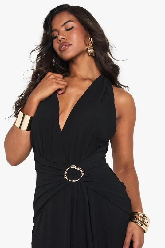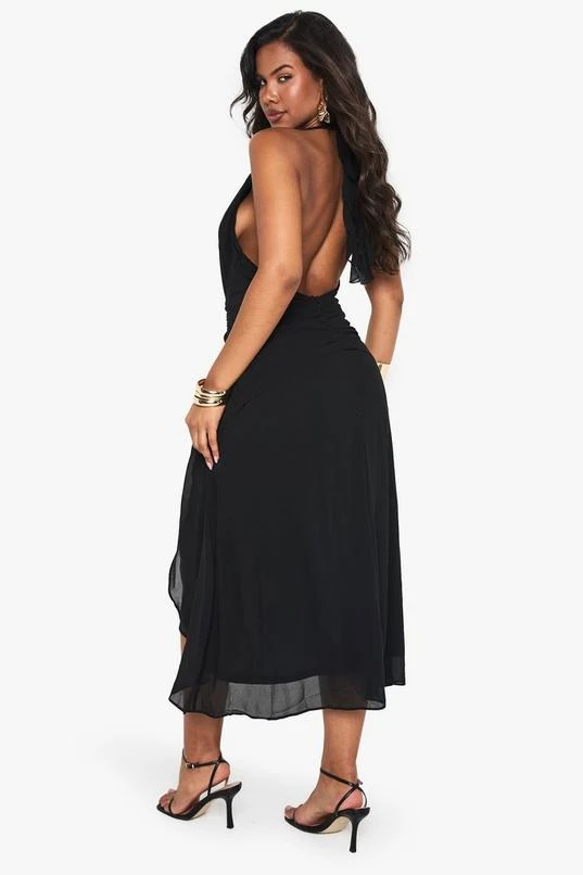 BOOHOO Plunge Chiffon Trim Detail Midaxi Dress