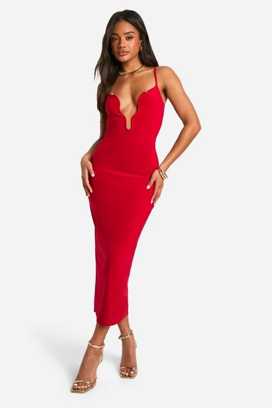 BOOHOO Plunge Trim Midaxi Dress