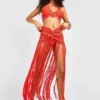 95% Polyester 5% Elastane. Machine Wash. Model Wears US size 12.