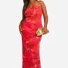BOOHOO Plus Abstract Floral Strappy Maxi Dress