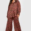 BOOHOO Plus Abstract Leopard Shirt & Pants Two-Piece