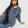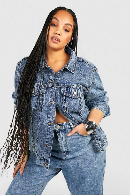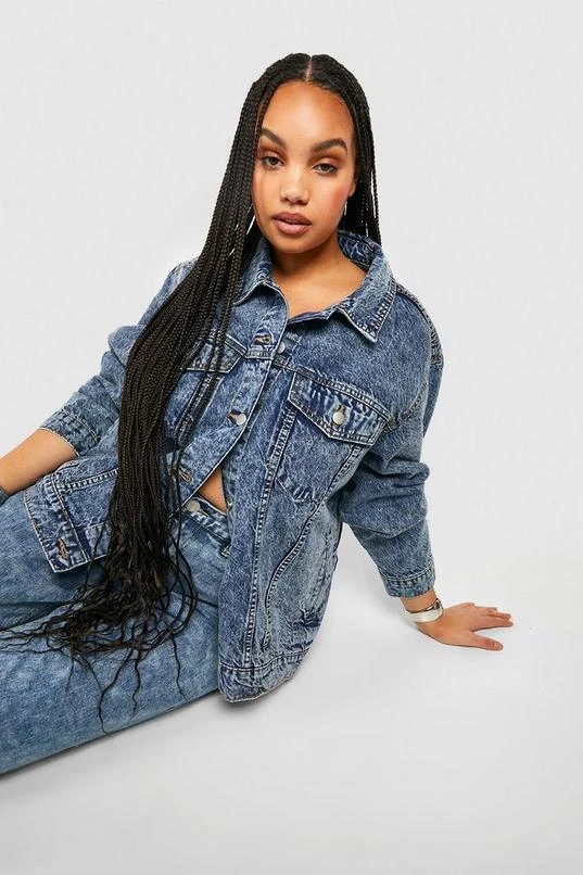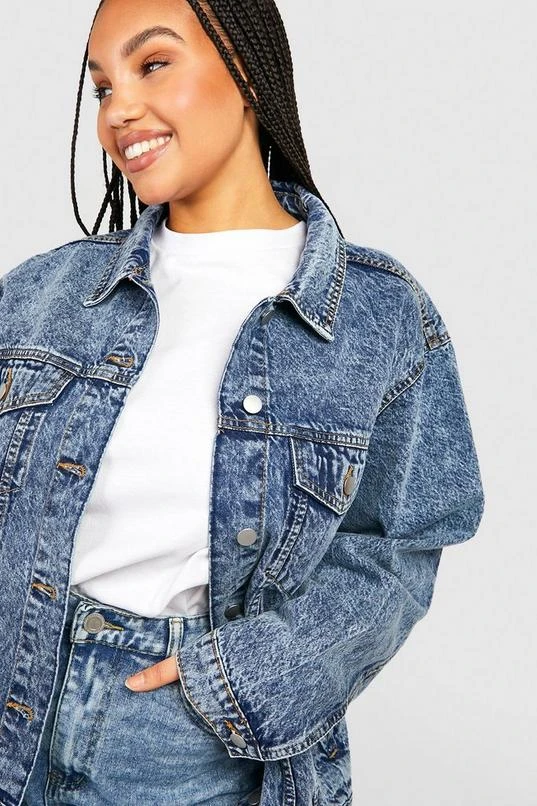 BOOHOO Plus Acid Wash Boyfriend Denim Jacket