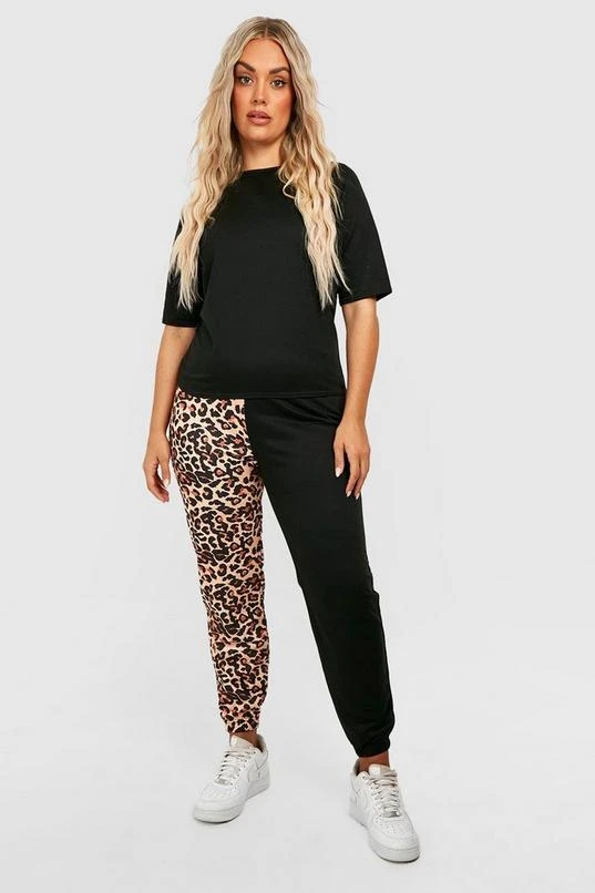 BOOHOO Plus Animal Color Block T-Shirt Tracksuit