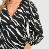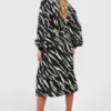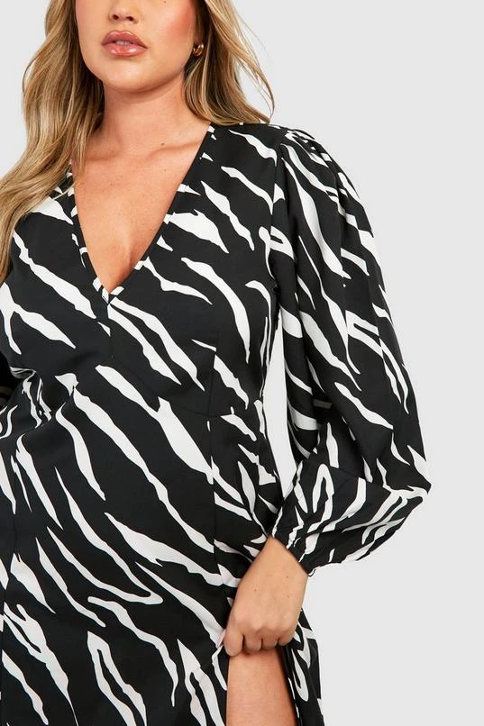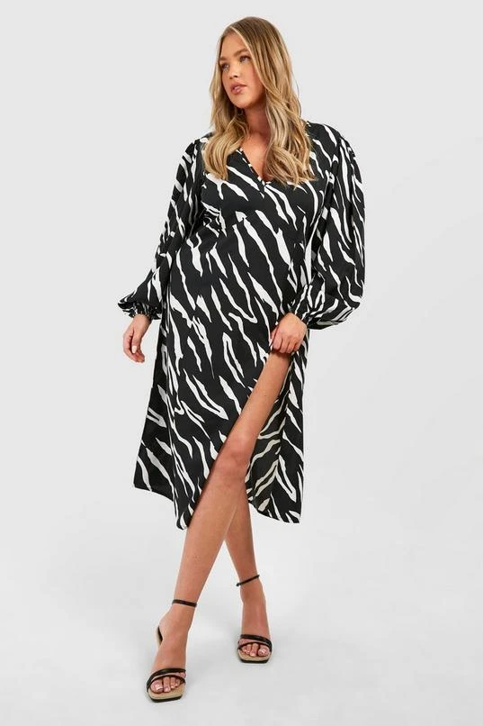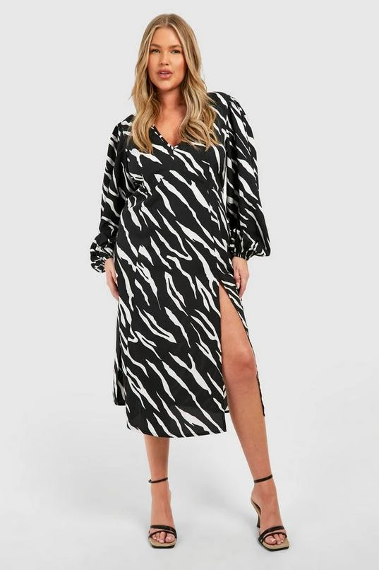 BOOHOO Plus Animal Print Blouson Sleeve Midi Dress