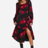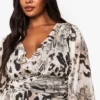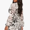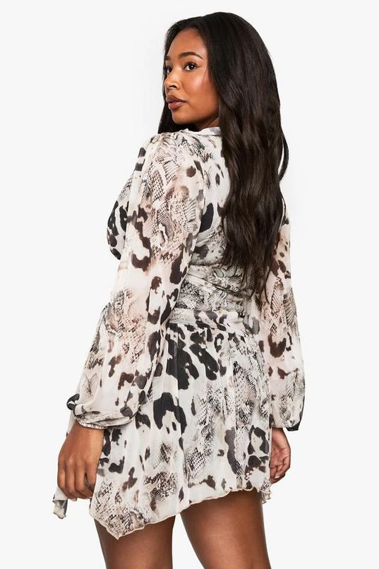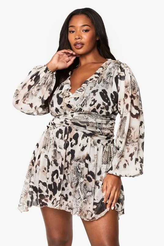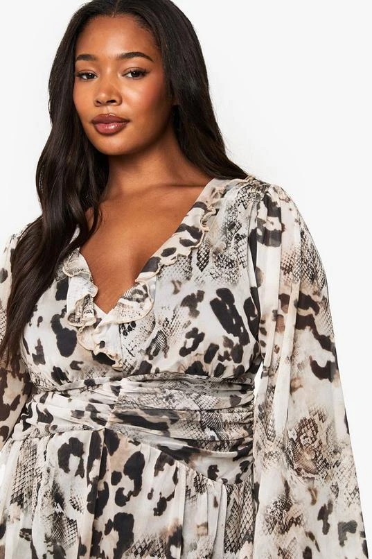 BOOHOO Plus Animal Print Mesh Ruffle Skater Dress