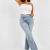 Our plus-size jeans are made of thick, stretchy material for ultimate support and shape control. They are great for sculpting with a wider waistband for a better fit, so curves are flattered to create a defined silhouette. Right now, straight-cut jeans are having a real moment, and we love them for how they balance everything out, from waist to ankle. If you’re after the perfect pair of plus-size jeans for women, then look no further.