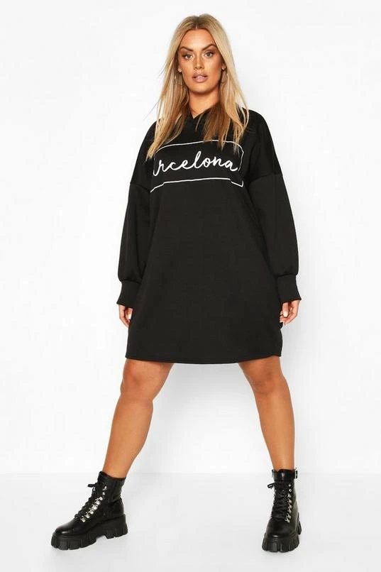 BOOHOO Plus Barcelona Oversized Hooded Sweatshirt Dress