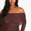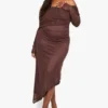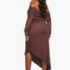 BOOHOO PLUS BARDOT LONG SLEEVE ASYMMETRIC HEM MAXI DRESS