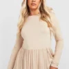 BOOHOO Plus Basic Long Sleeve Peplum Smock Dress