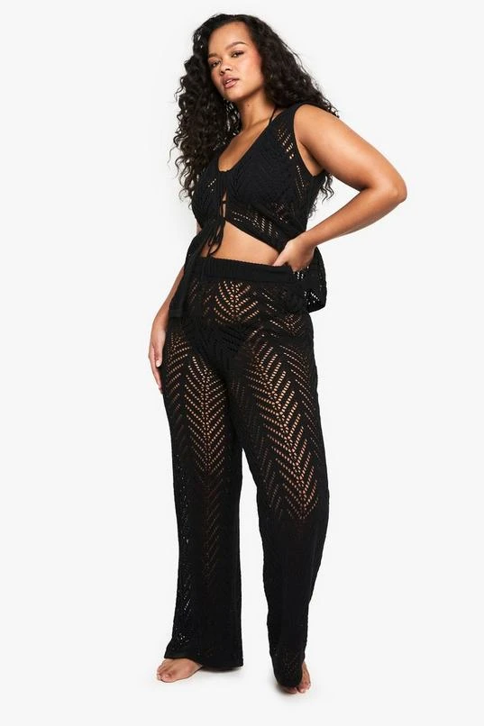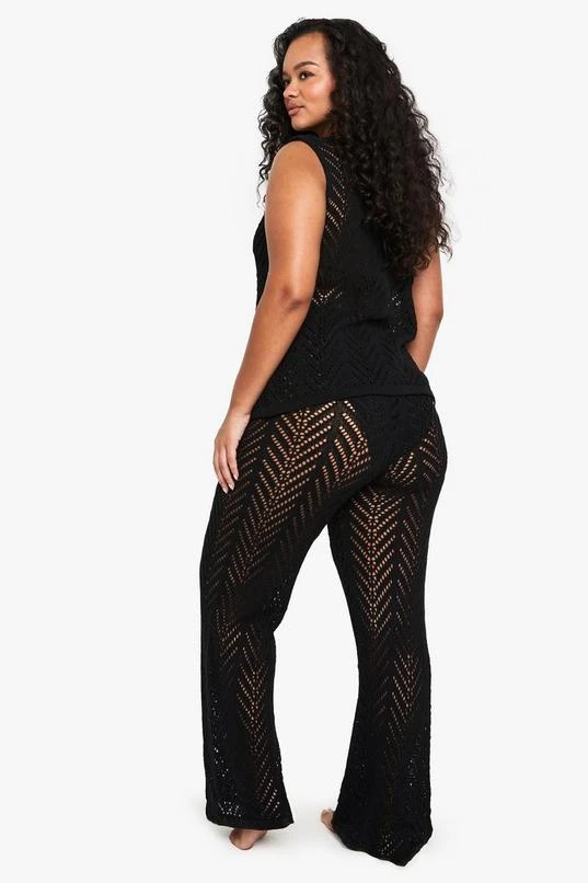BOOHOO Plus Beach Knit Wide Leg Trouser