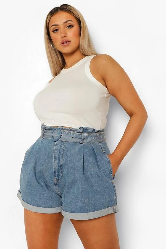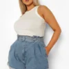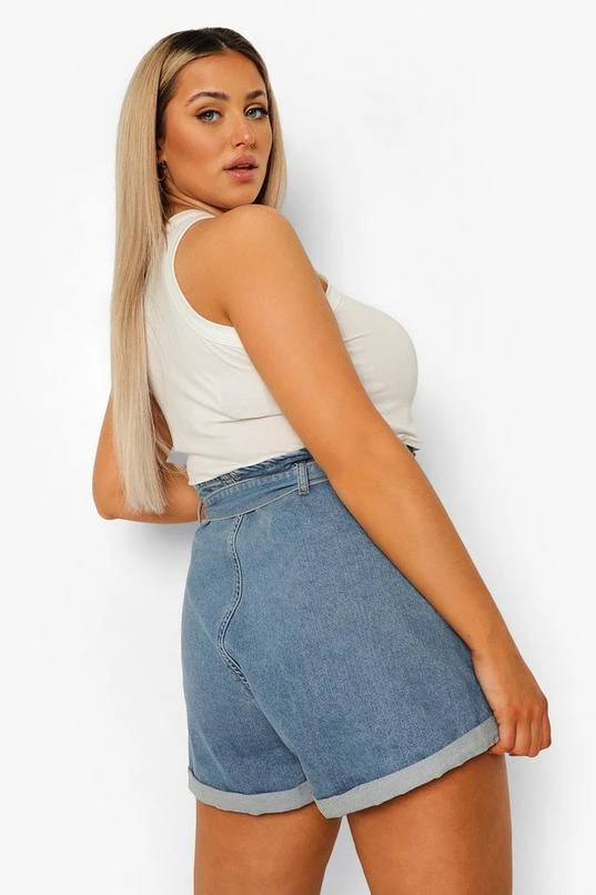 BOOHOO Plus Belted Paper Bag Jean Shorts