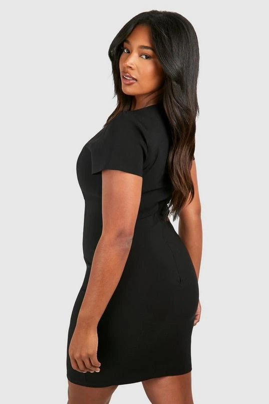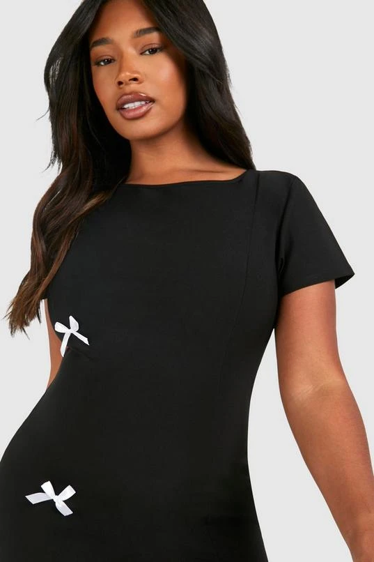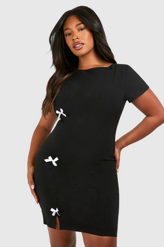 BOOHOO Plus Bengaline Bow Detail Split Shift Dress