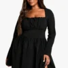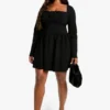 BOOHOO Plus Bengaline Corset Long Sleeve Skater Dress