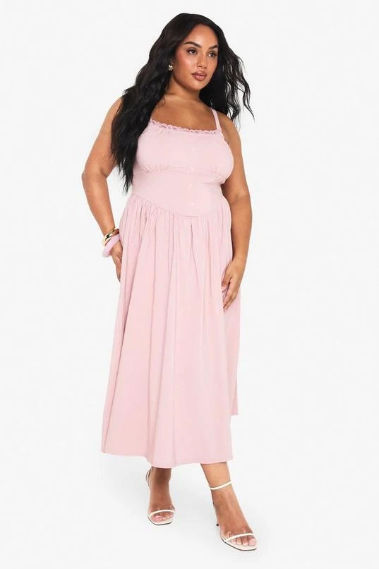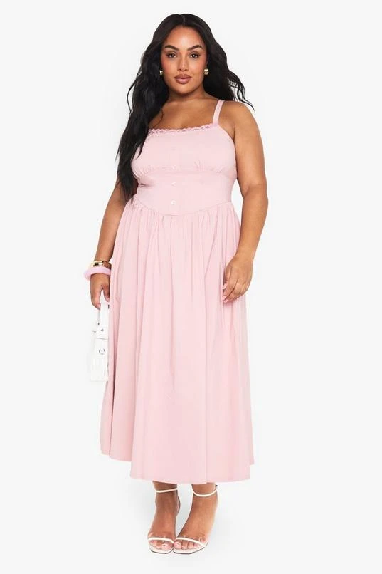 BOOHOO Plus Bengaline Lace Trim Midaxi Skater Dress