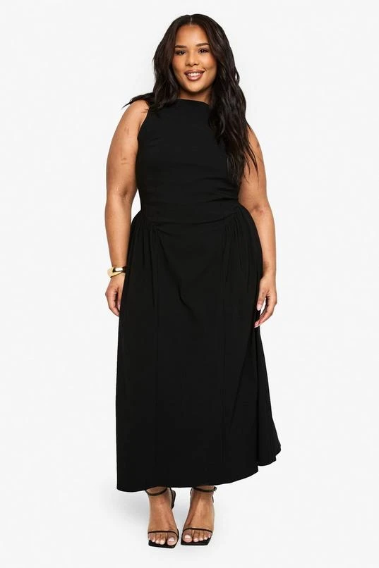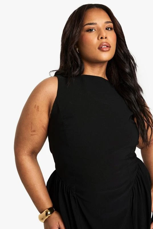 BOOHOO Plus BENGALINE SLEEVELESS MIDAXI SKATER DRESS