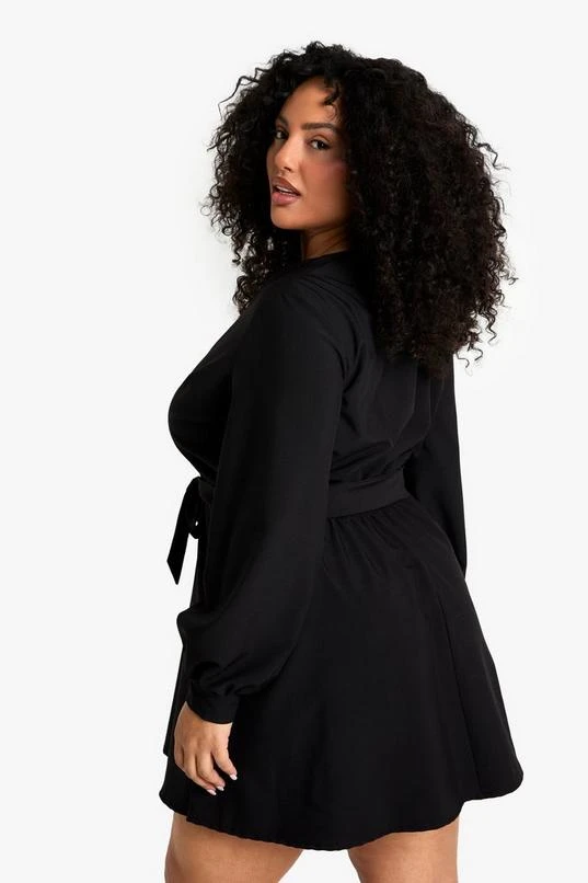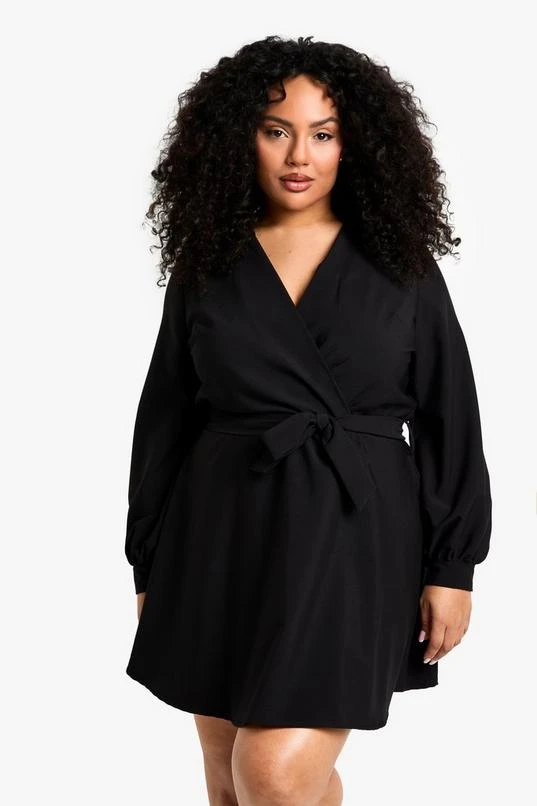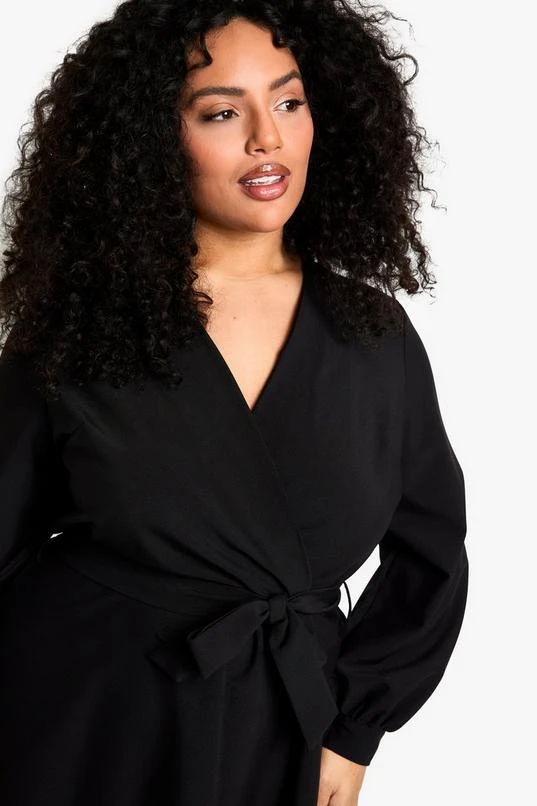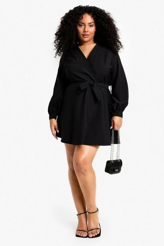 BOOHOO Plus Blouson Sleeve Mini Wrap Dress