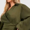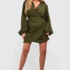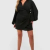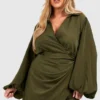 BOOHOO Plus Blouson Sleeve Wrap Dress