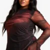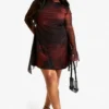 BOOHOO Plus Blurred Floral Flared Sleeve Shift Dress