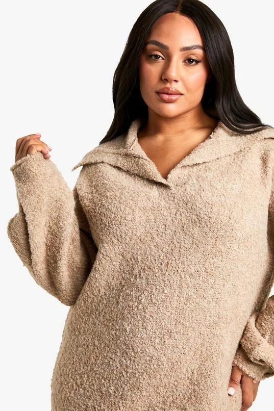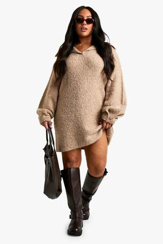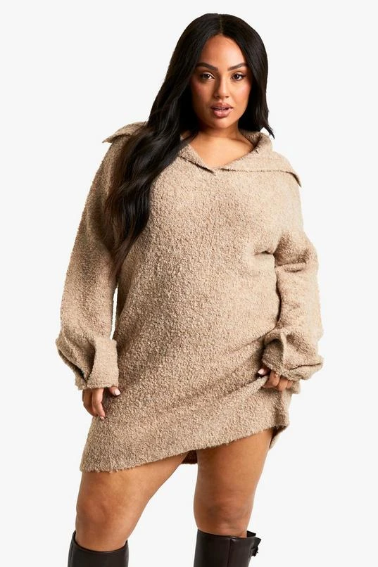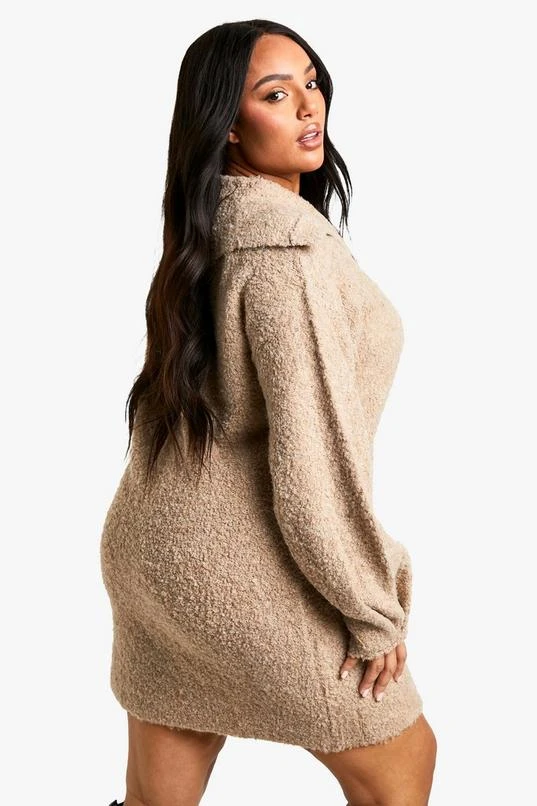 BOOHOO Plus Borg Oversized Collar Detail Mini Dress