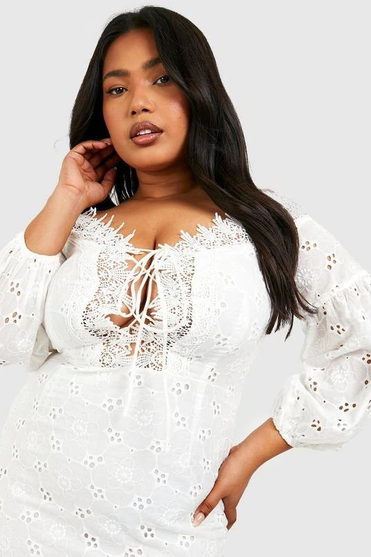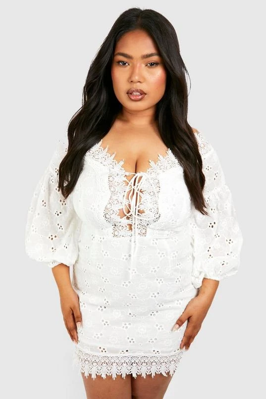 BOOHOO Plus Boutique Off Shoulder Lace Sundress