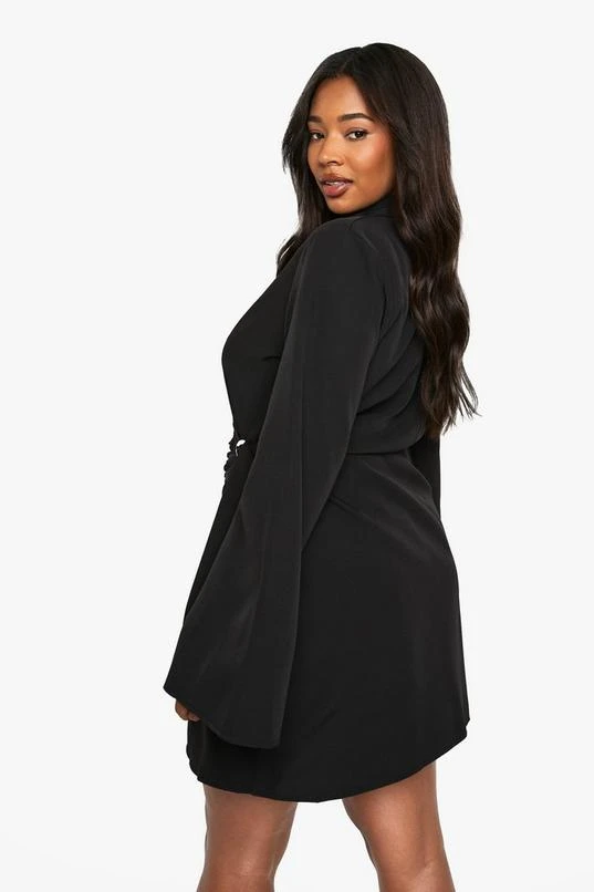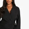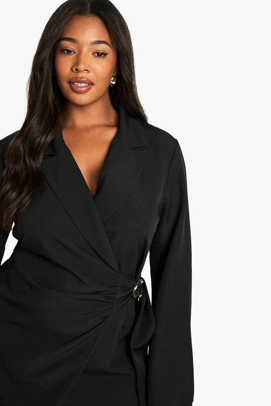 BOOHOO Plus Buckle Detail Tie Waist Tailored Blazer Dress