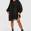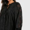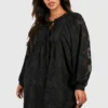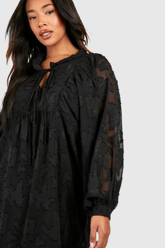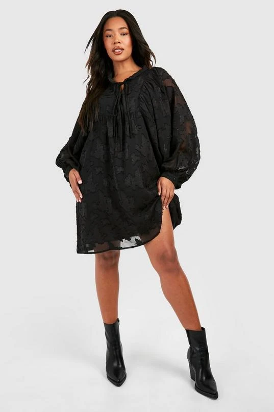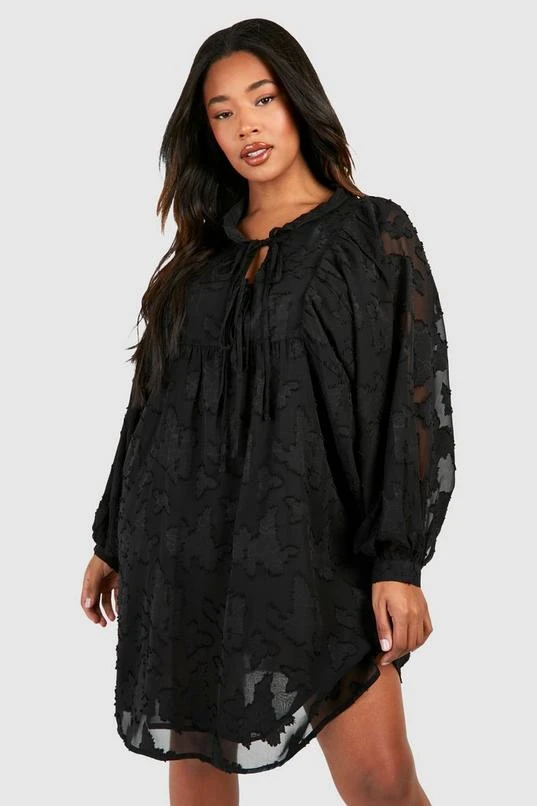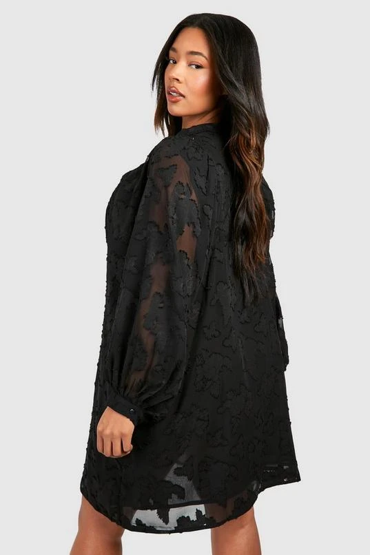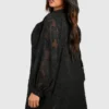BOOHOO Plus Burnout Mesh High Neck Long Sleeve Mini Dress
