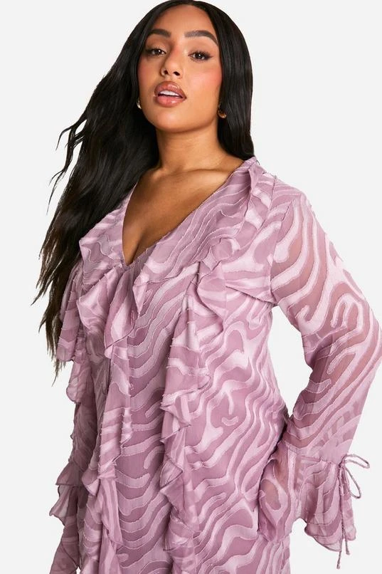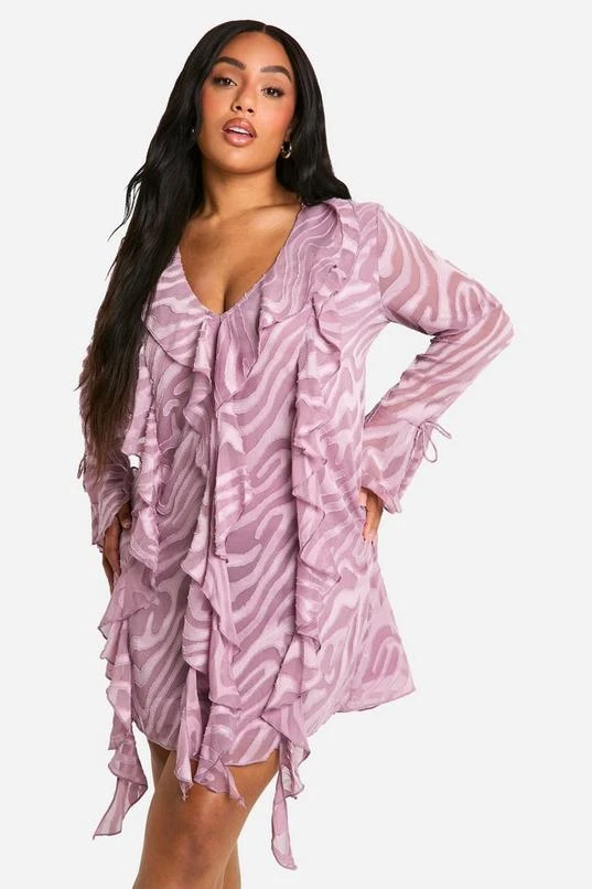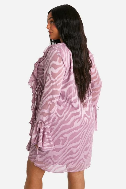 BOOHOO Plus Burnout Zebra Ruffle Shift Dress