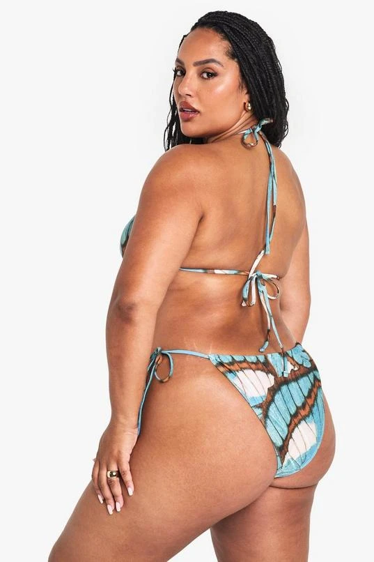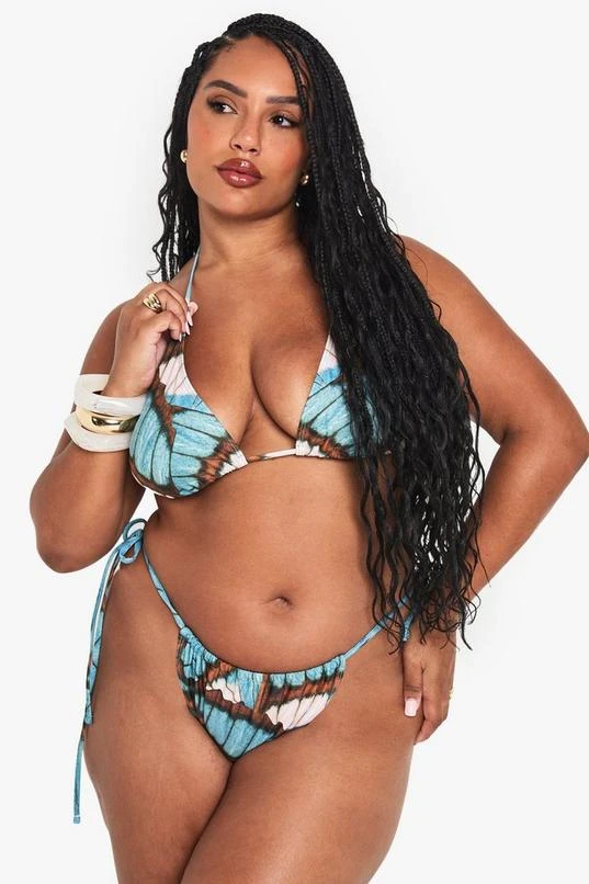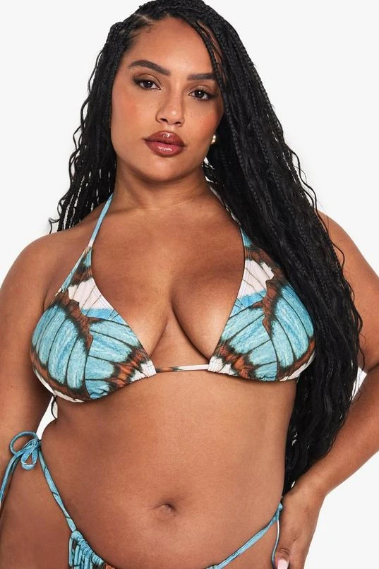 BOOHOO PLUS BUTTERFLY OVERSZIED PRINT TRIANGLE BIKINI