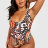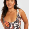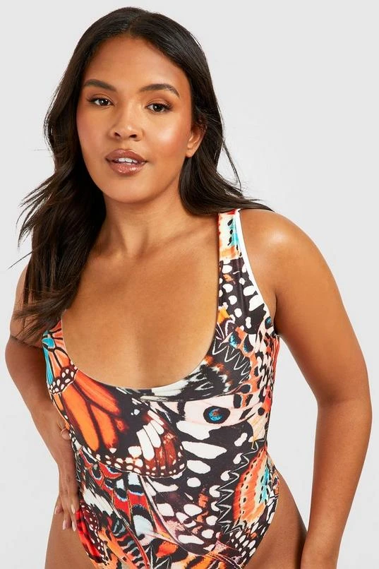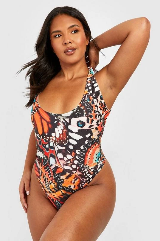 BOOHOO Plus Butterfly Print Scoop Swimsuit