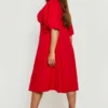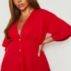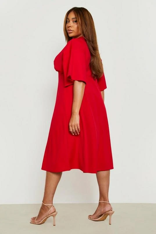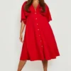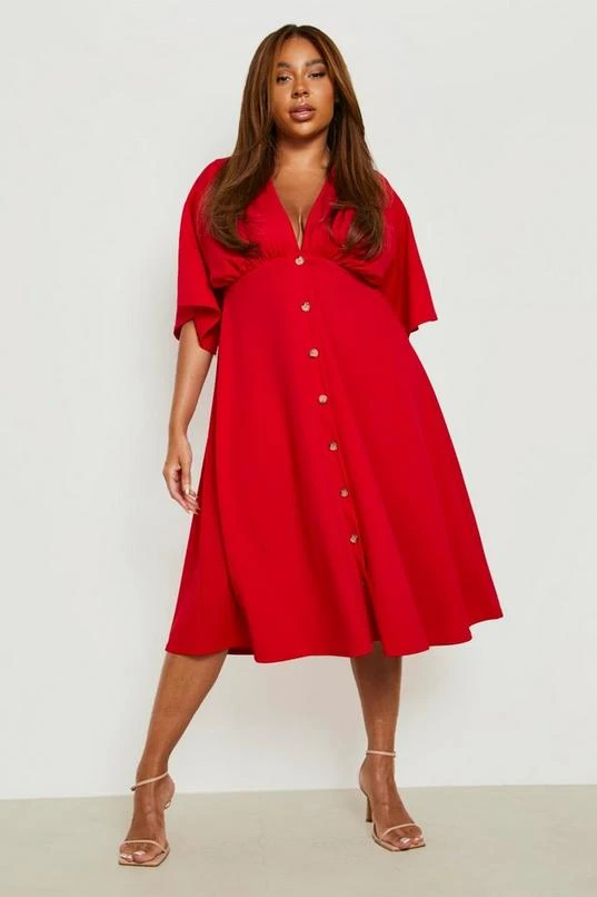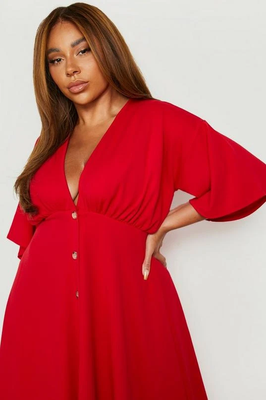 BOOHOO Plus Button Down Angel Sleeve Skater Dress