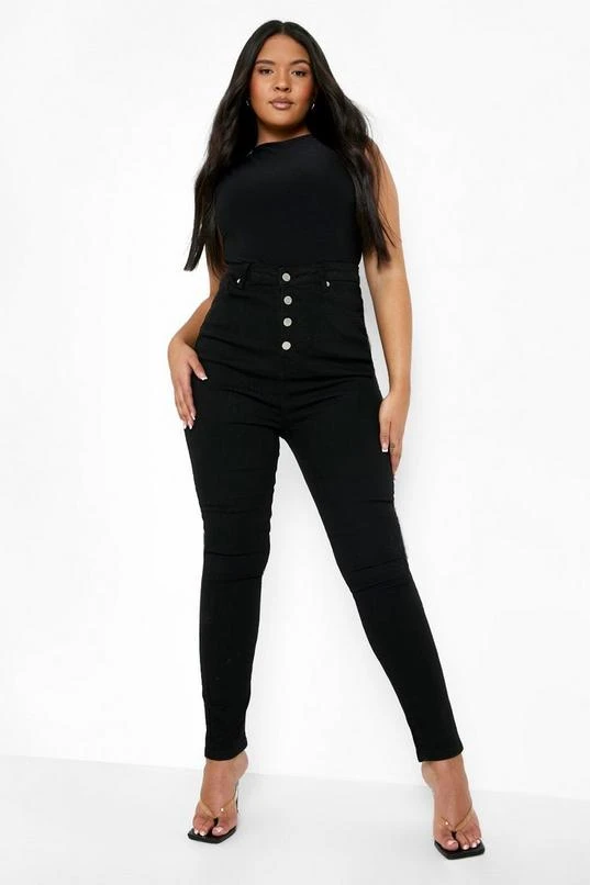 BOOHOO Plus Button Front High Waisted Skinny Jeans