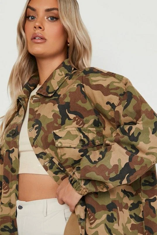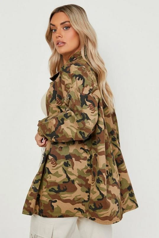 BOOHOO Plus Camo Denim Shacket