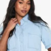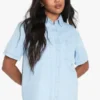 BOOHOO Plus Chambray Denim Short Sleeve Shirt