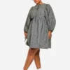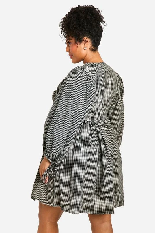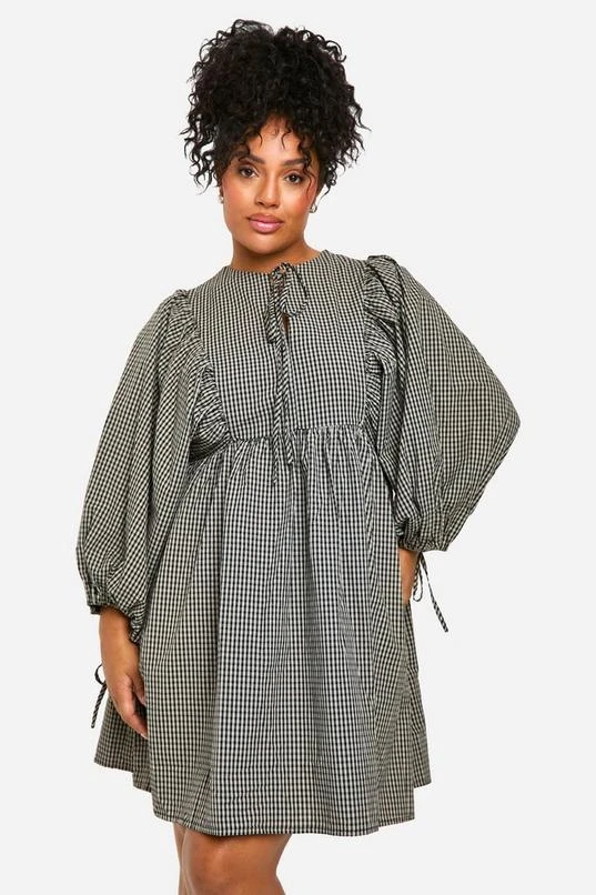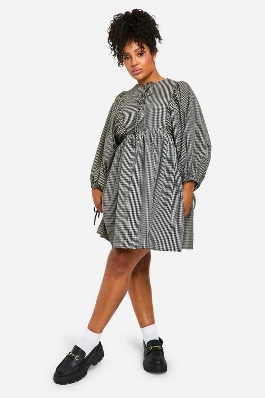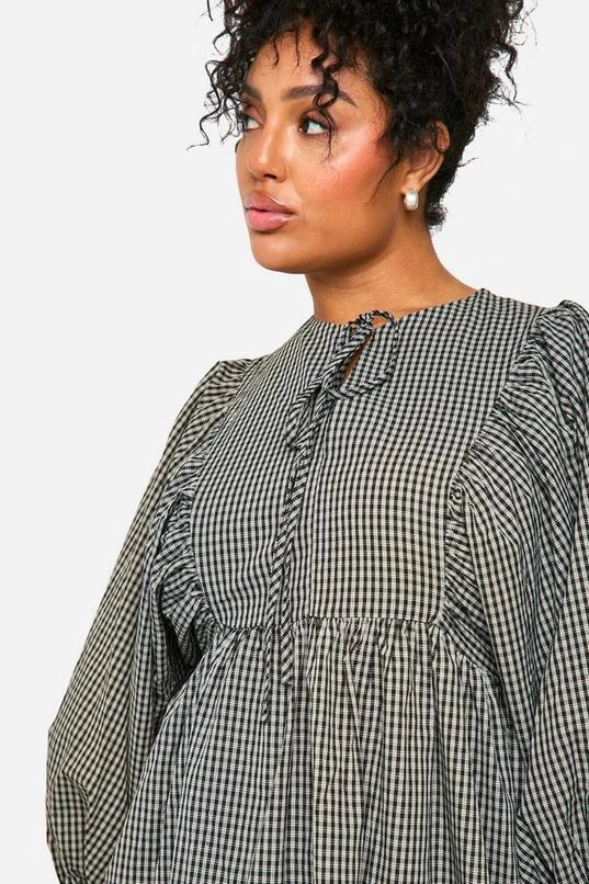 BOOHOO Plus Check Blouse Sleeve Smock Dress