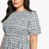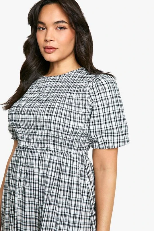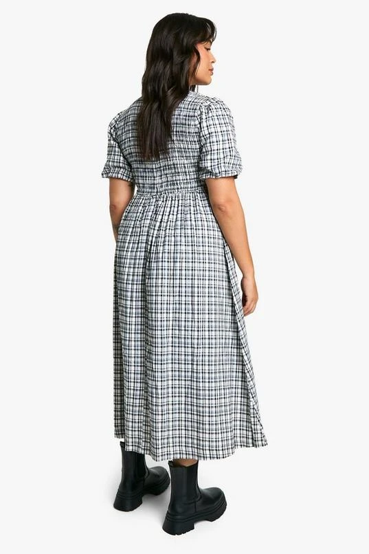 BOOHOO Plus Check Shirred Midaxi Dress