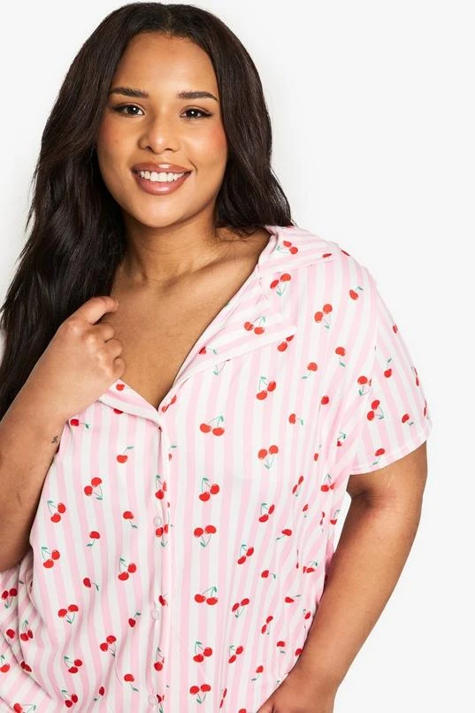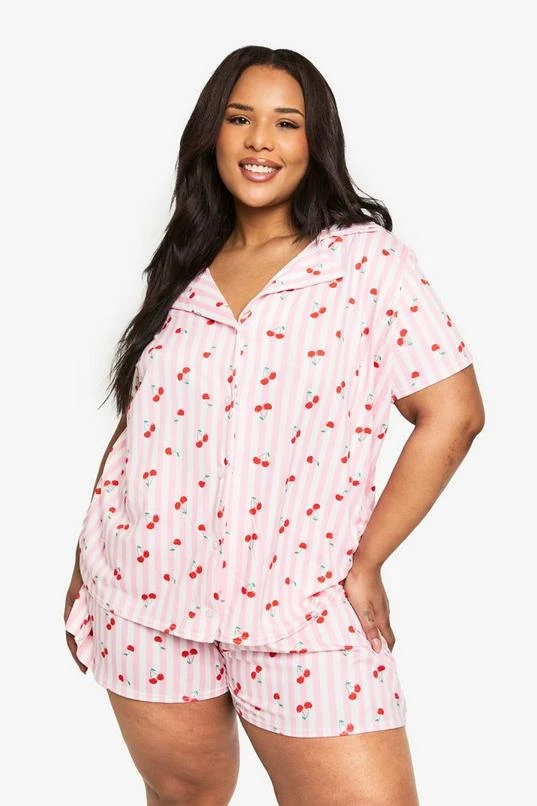 BOOHOO PLUS CHERRY PRINT SHIRT AND SHORT SET