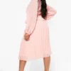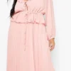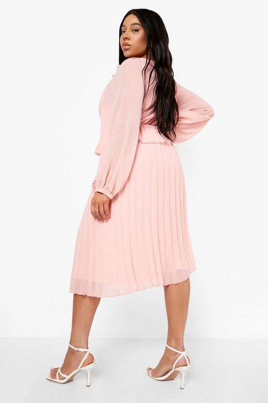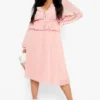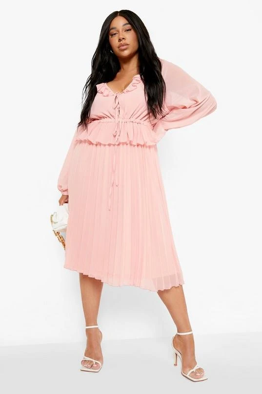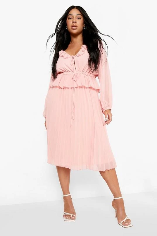 BOOHOO Plus Chiffon Pleated Ruffle Waist Skater Dress