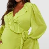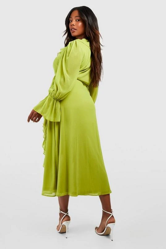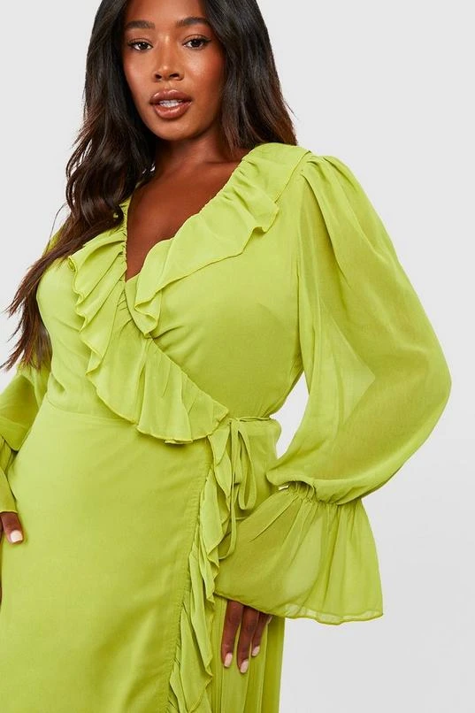 BOOHOO Plus Chiffon Ruffle Wrap Dress