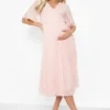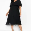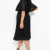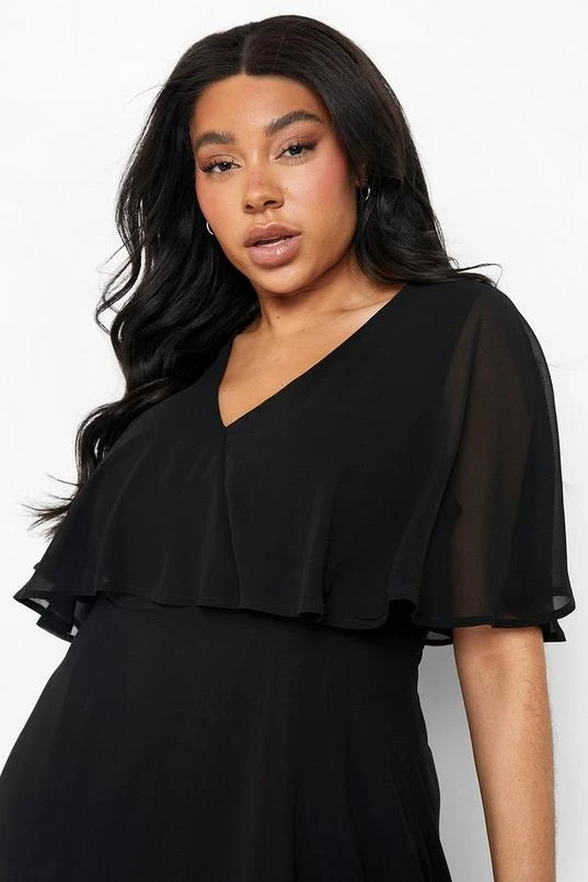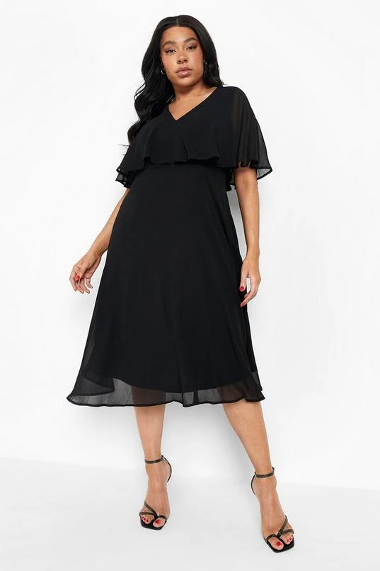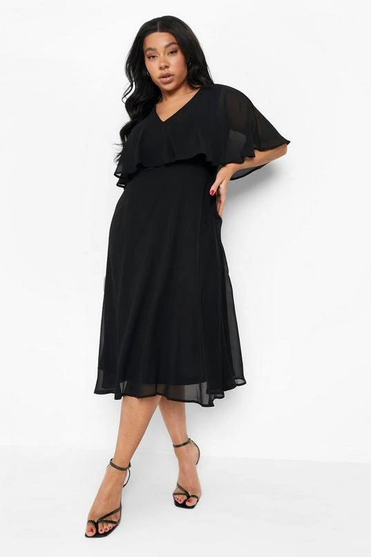 BOOHOO Plus Chiffon Wrap Cape Sleeve Midi Skater Dress