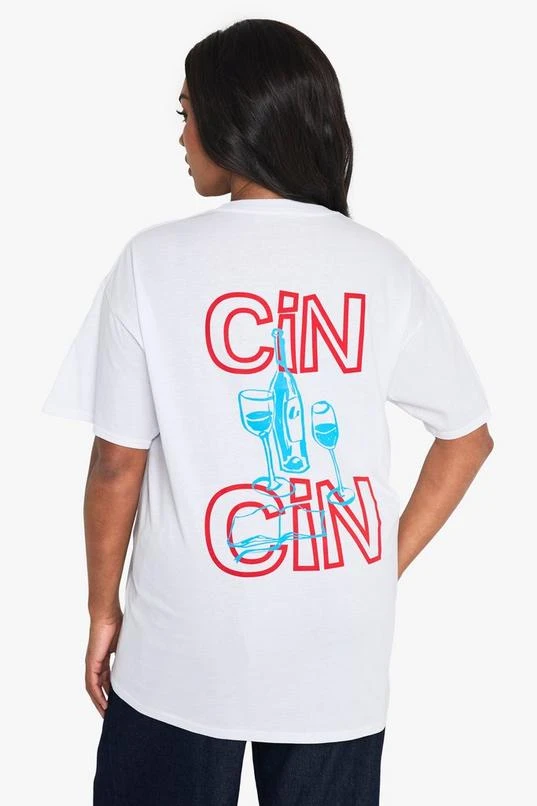 BOOHOO Plus Cin Cin Wine T-Shirt