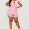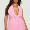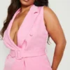 BOOHOO Plus Collar Detail Sleeveless Belted Blazer