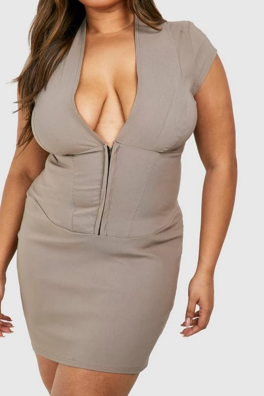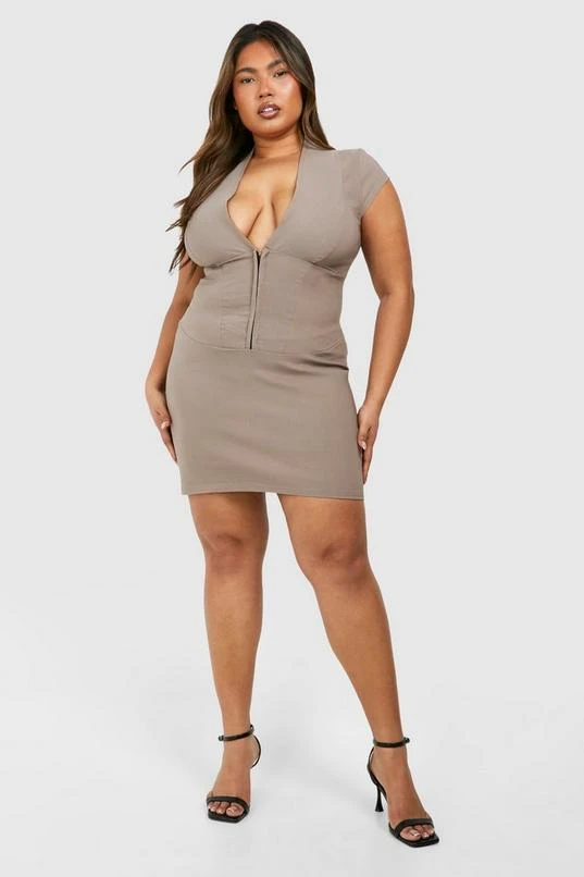 BOOHOO Plus Corset Hook And Eye Bodycon Dress