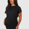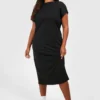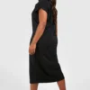 BOOHOO Plus Cotton Elastane Cap Sleeve Midi T-Shirt Dress