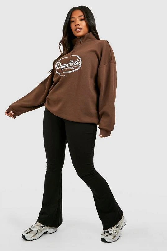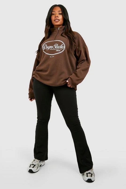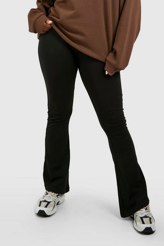 BOOHOO Plus Cotton Jersey Knit Folded Waistband Yoga Flares