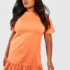 BOOHOO Plus Cotton Ruffle Smock Dress