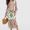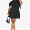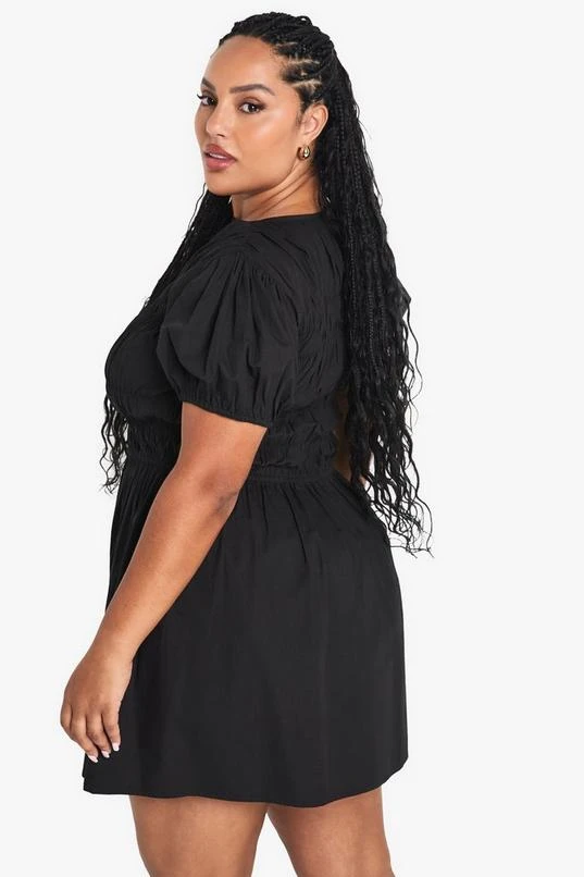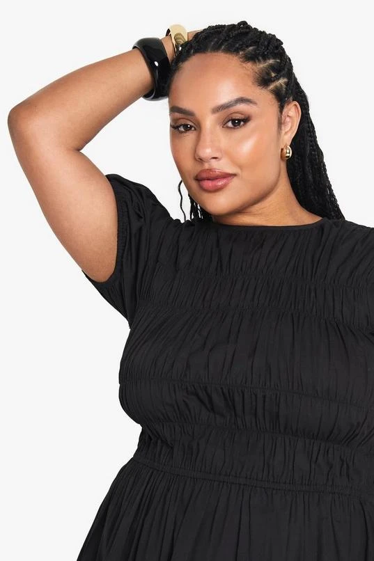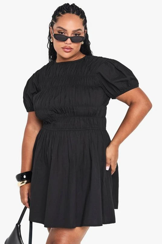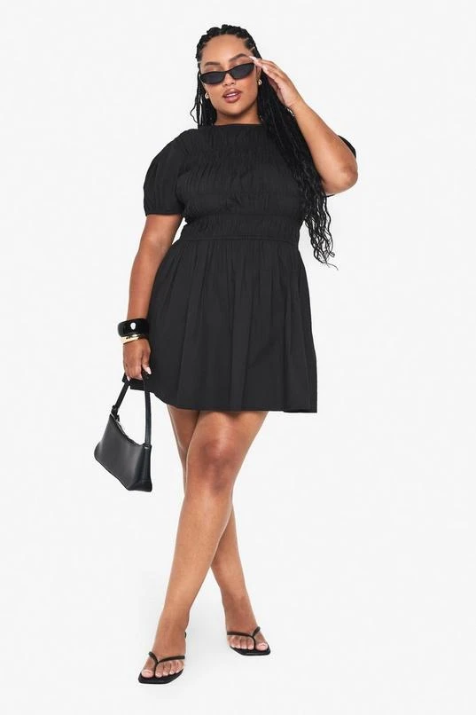 BOOHOO Plus Cotton Shirred Skater Dress