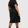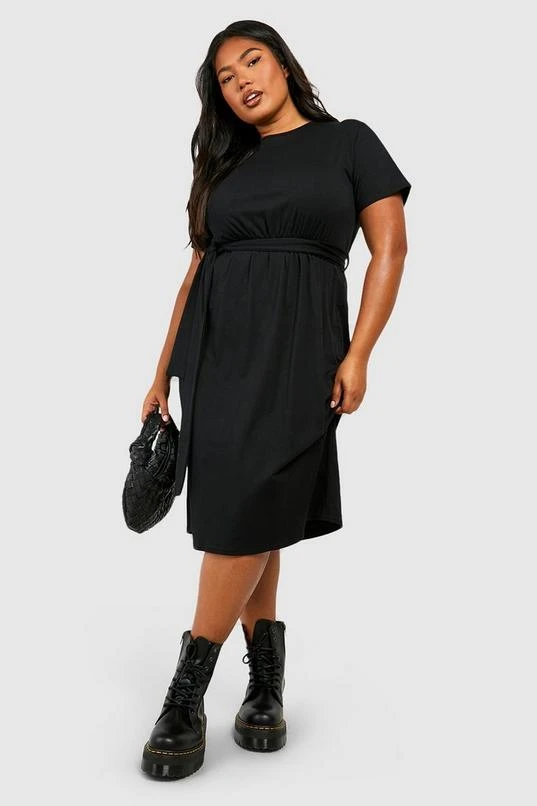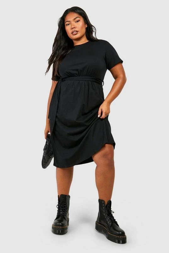 BOOHOO Plus Cotton Tie Belt Midi Dress