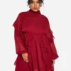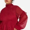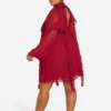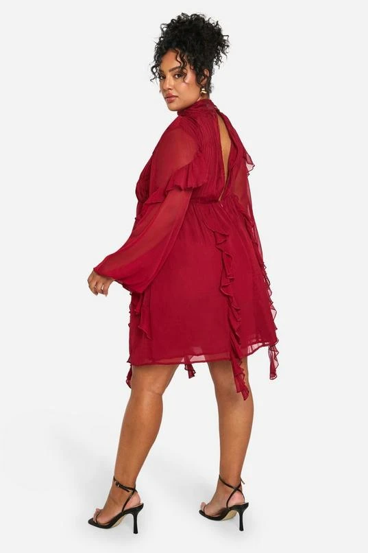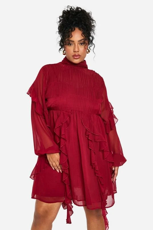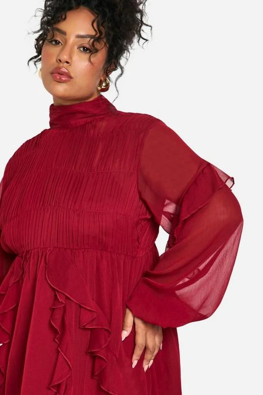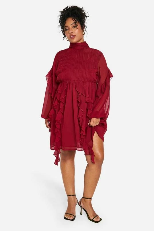 BOOHOO Plus Crinkle Chiffon Funnel Neck Ruffle Smock Dress